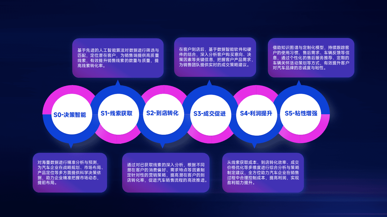 通过拓宽潜在客户来源、、、、优化线索分配并提高到店转化率,,,以增强销售效率。。同时,,,,利用线索数据不断优化分析模型,,,有效提升转化率,,,扩大营销影响力。。。